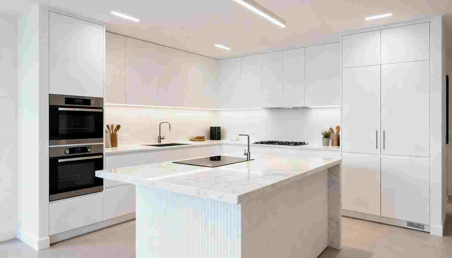 Les rangements deviennent invisibles, ce qui réduit le désordre visuel. Les tiroirs coulissants, par exemple, facilitent l’accès aux ustensiles. De plus, les meubles d’angle optimisés permettent d’utiliser chaque centimètre.